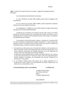 Délib n°82 - Création emploi temps non complet- Cat B enseignant direction d'orchestre