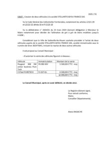 Délib n°91 Cession de deux véhicules à la société STELLANTIS &YOU FRANCE SAS
