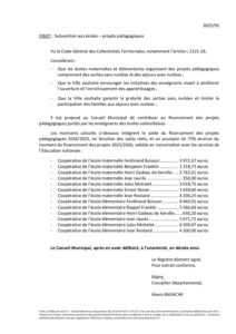 Délib n°95 Subvention aux écoles - projets pédagogiques