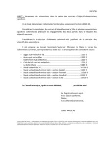 Délib n°96 Versement de subventions dans le cadre des contrats d’objectifs-Associations sportives