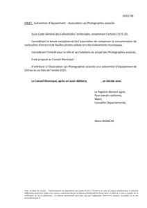 Délib n°99 Subvention équipement Photographes associés 2025