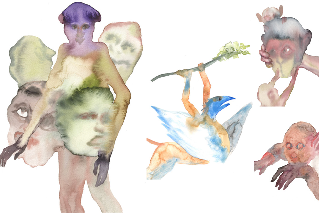 Subtilement, les encres et les formes hybrides, mi-végétales, mi-animales, s’infiltrent sur les murs, la céramique, le textile, ou encore un kayak voire un deltaplane. L’univers de l’artiste, peuplé de Yokaï, petit démon japonais grimaçant, embarque dans une mythologie personnelle.